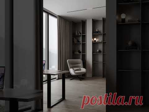 Просторный светлый кабинет из проекта дома в Сочи в стиле минимализм
