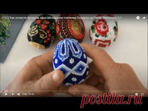 (111) Как оплести бисером яйцо.Мозаичное плетение.Подарок на Пасху. Верхушка.Ч.1