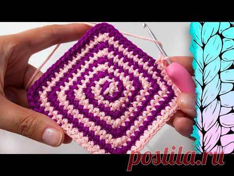 Знаете, как связать такой квадратный мотив?! Вязание крючком методом Хеликс
