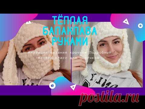 Балаклава из ализе пуффи с ушками зайка с цепочкой плотной вязки имитация крючком без подклада