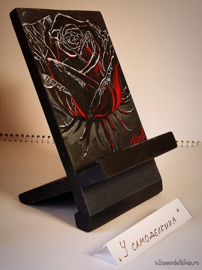Расписная подставка для телефона из фанеры Приветствую всех самоделкиных. Сегодня, хочу продемонстрировать вашему вниманию процесс изготовления расписной подставки для телефона. Мы живём в двадцать первом веке, в ту эпоху, когда многое зависит от информации. Широкое распространение получили мобильные телефоны, которые на данный момент есть