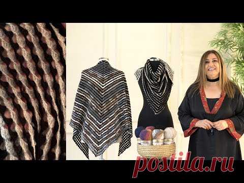 Alize Angora Gold ile Balıksırtı Şal • Herringbone Shawl • Шаль «рыбий хребет»