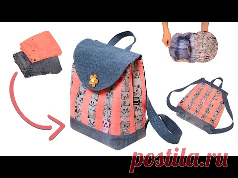 Потрясающая простая идея пошива рюкзака из старых джинсов!