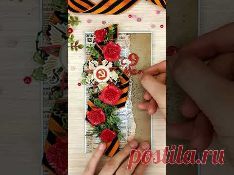 Открытка на 9 Мая с красными гвоздиками из фоамирана, орденом, Георгиевской лентой и зеленушками 💗