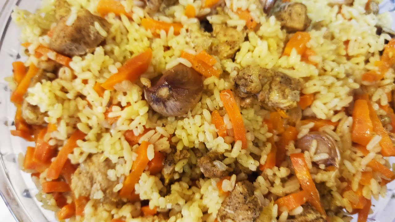 Плов в рукаве для запекания, все сложила в пакет и плов готов! 1луковица3 моркови300 грамм пропаренного риса0.5 кг мяса ( у меня свинина) 1 головка чеснокаСоль и специи по вкусу