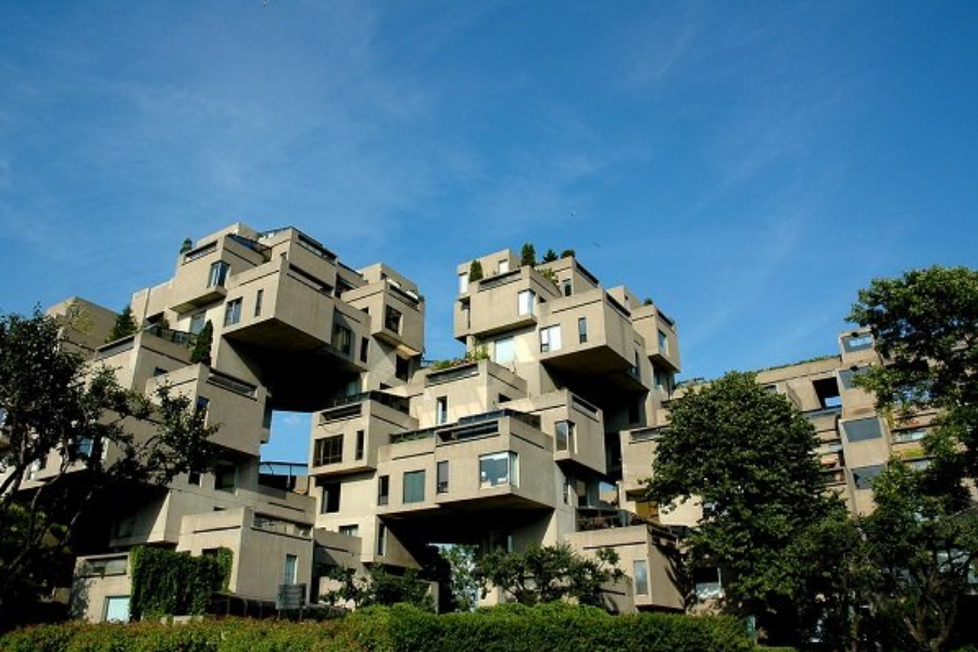 В предыдущей статье мы рассказали о доме, построенном в Ленинграде в 1960 году из “бетонных кубиков”. В городе на Неве продолжения эксперименту не последовало. Но одновременно с изысканиями и строительством необычного дома в СССР студент Университета Макгилла, что в Канаде, Моше Сафди подготовил дипломный проект, который назвал «Блок для городской жизни».