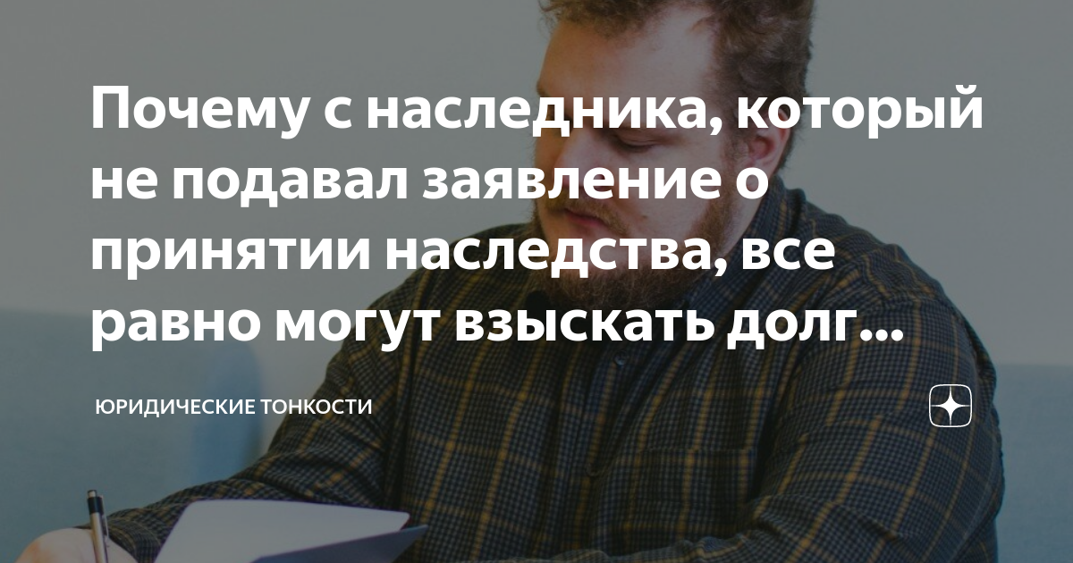 Почему с наследника, который не подавал заявление о принятии наследства, все равно могут взыскать долг наследодателя Вслед за наследством всегда тянутся долги наследодателя: закон обязывает наследников выплатить их, если те приняли наследство. Поэтому нередко родственники не спешат к нотариусу с заявлением о принятии наследства, зная о том, что у наследодателя были долги (ст. 1175 ГК РФ). Однако печальный опыт многих, кто решил пойти по этому пути, показывает, что не все...
