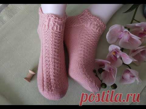 Короткие носочки с ажурной резинкой, Часть 2. Подробный МК от набора петель до закрытия мыска.