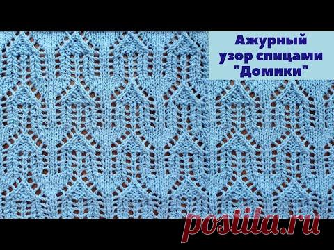 Оригинальный ажурный узор "Домики".Вязание. Схемы узоров спицами. Knitting openwork pattern "Houses"