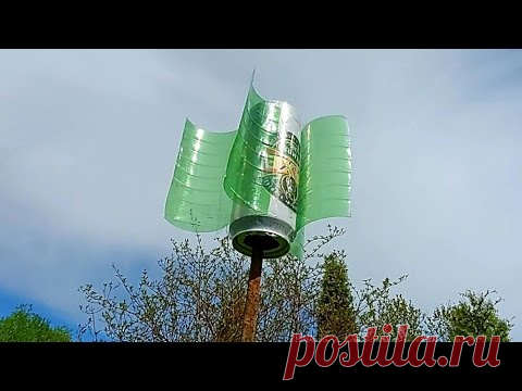 Ветряк из пластиковой бутылки и алюминиевой банки своими руками! Отпугиватель кротов и птиц.