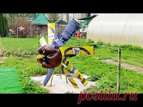 Ветряк флюгер из пластиковой бутылки отпугивания птиц и кротов самоделка своими руками