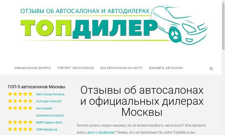 Отзывы об автосалонах на Topdiler.ru