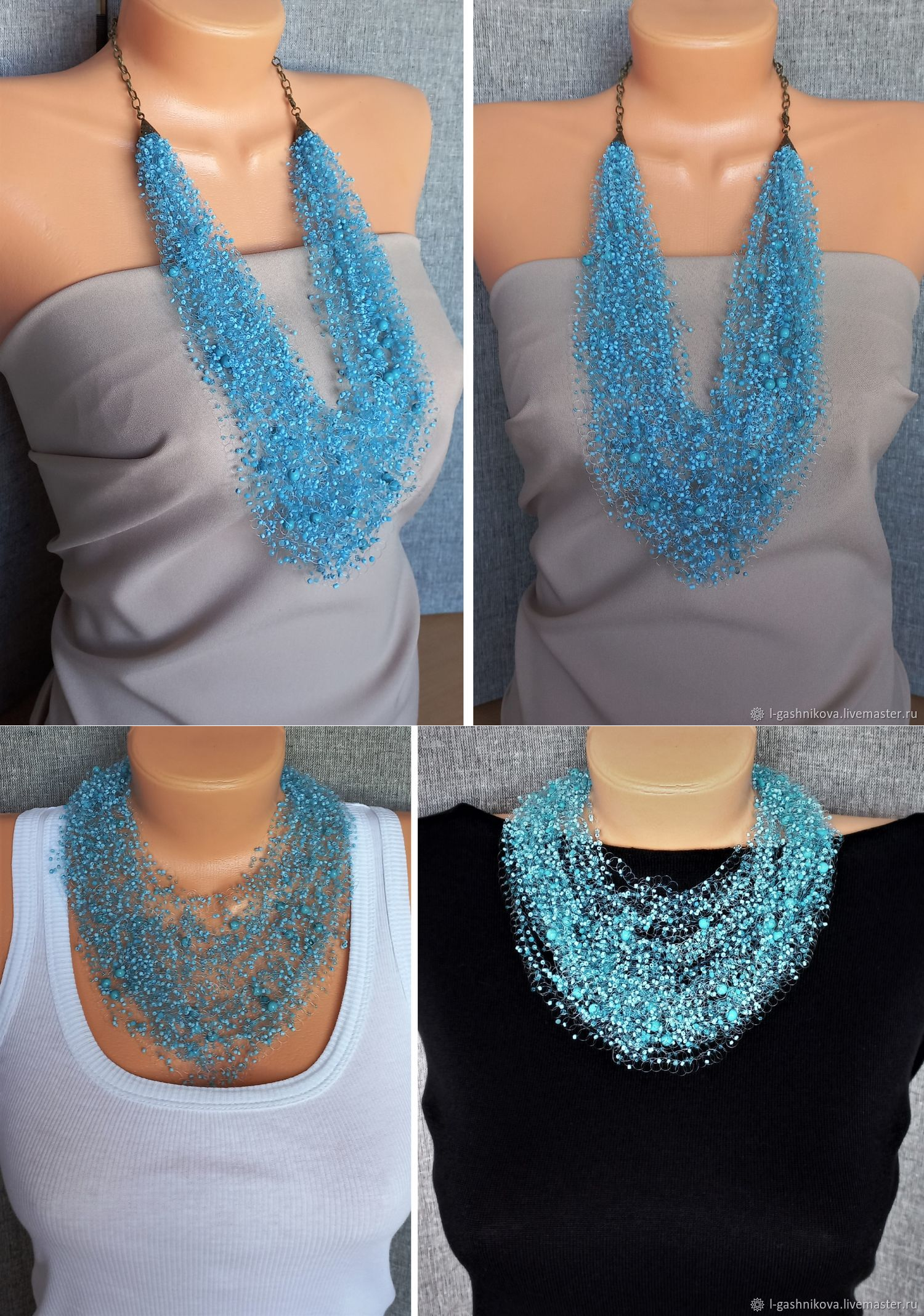 Колье-воздушка (с видео) из бирюзы и бисера Бирюзовое облако купить в интернет-магазине Ярмарка Мастеров по цене 1700 ₽ – T1652RU | Бусы, Оренбург - доставка по России