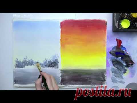 Диптих «‎Утро и вечер» | Рисуем гуашью