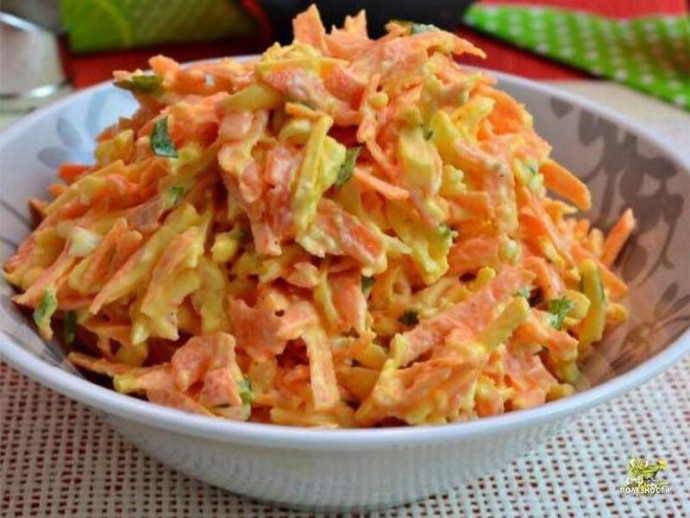 Caлат из моркови c сыром и яйцами