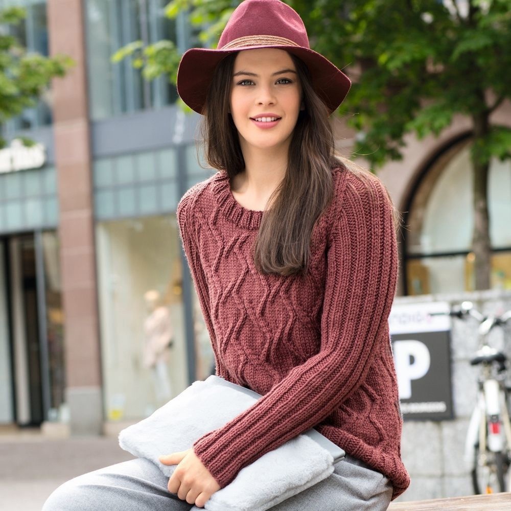 Джемпер с рельефным узором и рукавами реглан Модель привлекает внимание эффектным сочетанием узоров, а также необычным исполнением «классических» ромбов.Размеры36/38 (40/42) 44/46ВАМ ПОТРЕБУЕТСЯПряжа (50% натуральной шерсти, 50% полиакрила; 80 м/50 г) — 500 (550) 600 г кирпично-красной; спицы №7; круговые спицы №7.УЗОРЫ И...