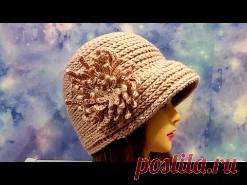 Шляпка с цветком ,,Паучок,, крючком. Шляпа-Шапочка для начинающих.