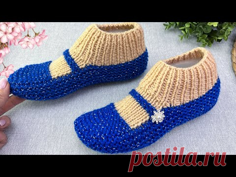 ТАПОЧКИ-СЛЕДОЧКИ на ДВУХ СПИЦАХ. МК ДЛЯ НАЧИНАЮЩИХ.