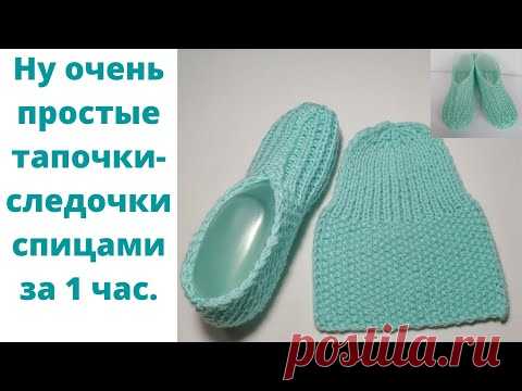Очень простые тапочки следочки на спицах. Как связать тапочки-следочки на спицах за 1 час.