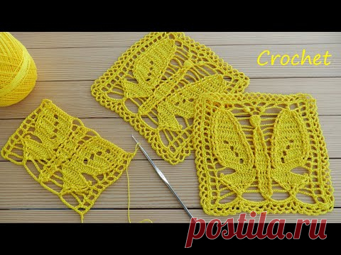 Очаровательный КВАДРАТНЫЙ МОТИВ "Бабочка" ВЯЗАНИЕ КРЮЧКОМ Crochet motif tutorial patterns