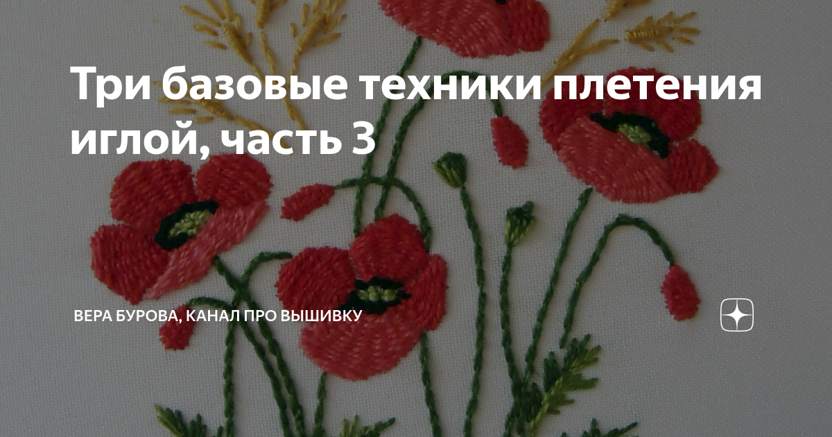 Три базовые техники плетения иглой, часть 3 Вернемся к базовым техникам в вышивке, сегодня разговор пойдет о плетении. Я очень люблю применять эти приемы в вышивке, особенно декоративной, вышивать цветы, листья, корзинки ... Все швы выполнены мулине GAMMA полной пасмой (6 нитей) иглой для ручного шитья № 8 на смесовой ткани (лен + вискоза). Итак, начнем! 1. Плетение по кругу а) роза-паутинка б) звездочка 2. Плетение по прямоугольной форме а) простая плетенка б) выпуклая пл...