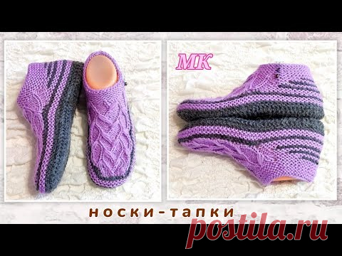 🥇Супер!👍 Носки-тапки с ростком задника 😍МК на двух спицах без шва на подошве 🤗