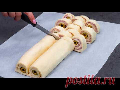 3 шага и закуска готова! Рулетики из слоеного теста, проще чем вы думаете