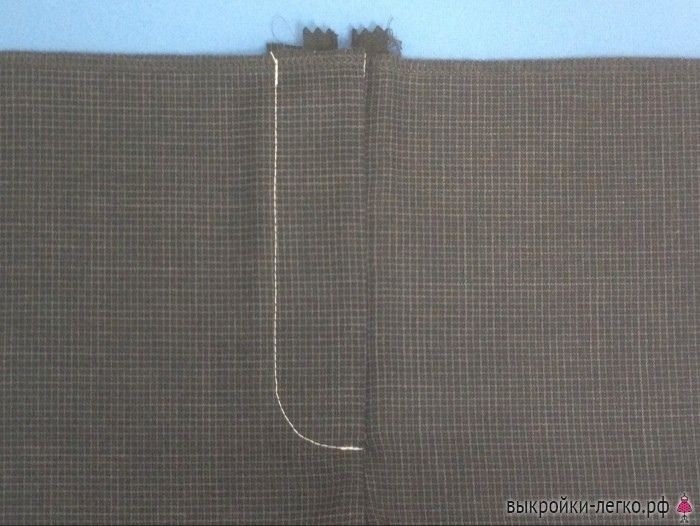 Как пришить "молнию" к брюкам Как пришить "молнию" к брюкамПоследовательность обработки застежки брюк в фотографиях.1. Отскок и правый срез передней половинки брюк с цельнокроеный обтачкой укрепляем клеевой прокладкой. Передние половинки брюк стачиваем по среднему срезу от шагового среза до конца застежки.