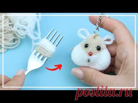аксессуар помпон хомяк (ширина 5см, высота 4см): вилка; пряжа белого и бежевого цветов; темные нитки для украшения хохолка и рта; бусины для глаз и носа; ножницы, иголка и нитки. МК NataliDoma DIY канал NataliDoma DIY https://www.youtube.com/@NataliDoma