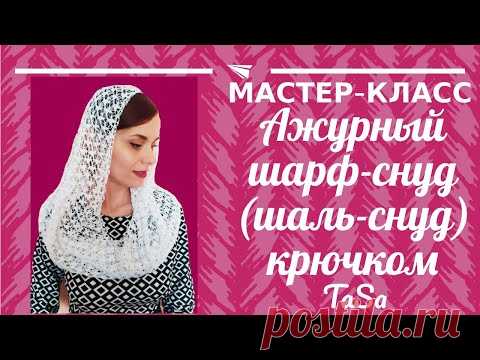 Нарядный ажурный шарф-снуд крючком. Шаль-снуд крючком.