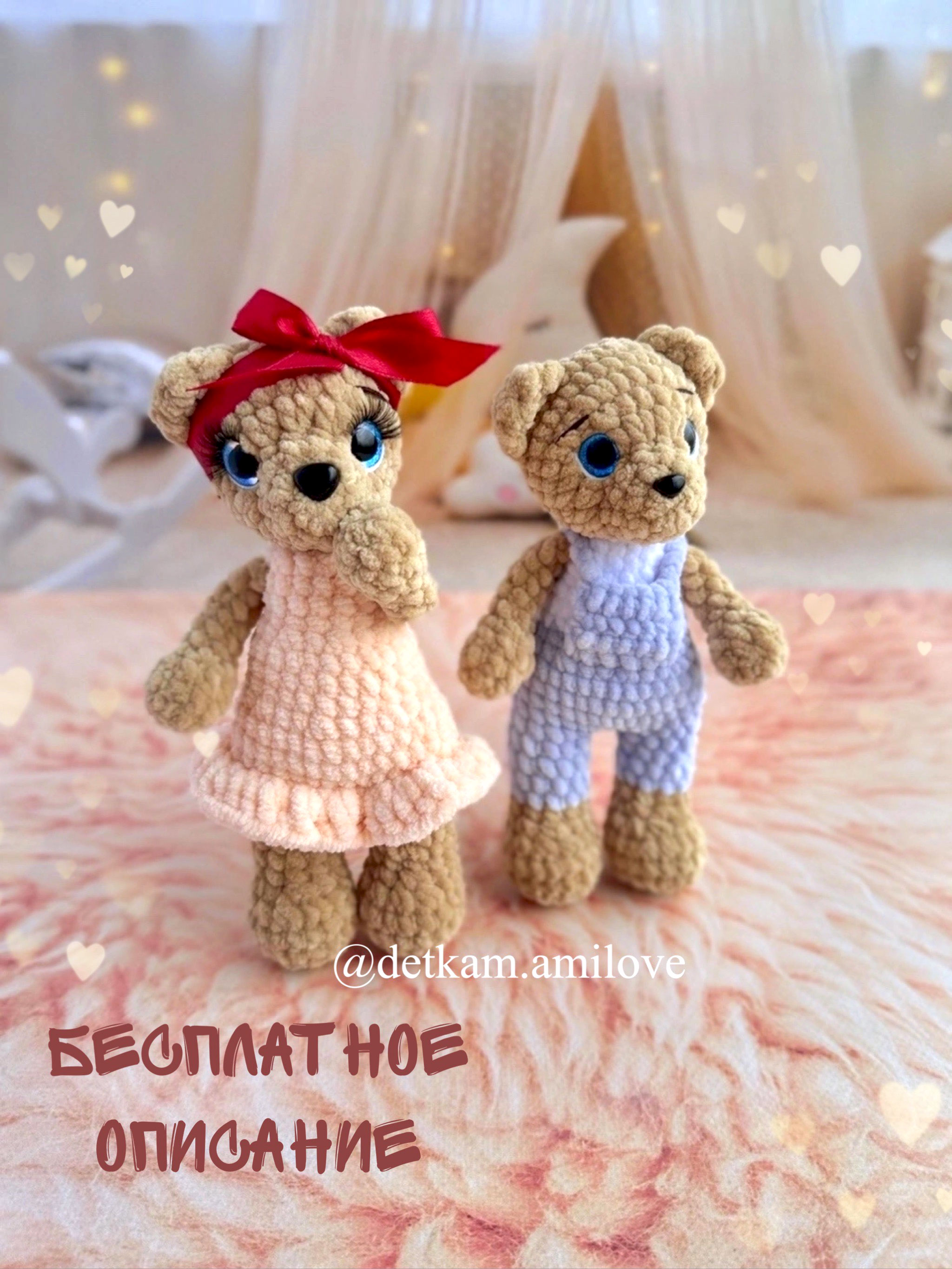 PDF Мишки крючком. FREE crochet pattern; Аmigurumi animal patterns. Амигуруми схемы и описания на русском. Вязаные игрушки и поделки своими руками #amimore - медведь из плюшевой пряжи, плюшевые медвежата, девочка и мальчик мишка.