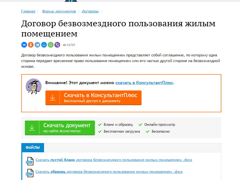 Договор безвозмездного пользования жилым помещением, образец 2023