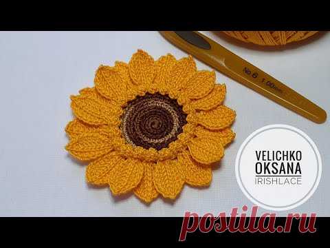 Подсолнух крючком № 1. Мотив для ирландского кружева от velichko_oksana. irishlace Цветы для ирландского кружева от velichko_oksana. irishlace https://www.youtube.com/playlist?list=PLcEIAlJFKKkIDNLikGV6ExS9l5J9XLV2W