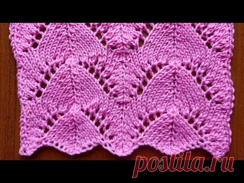 Ажурный узор спицами. Узоры спицами. Вязание спицами. Красивый ажурный узор для палантинов, кофт.