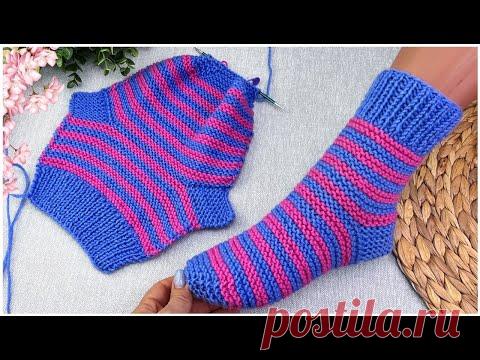 СУПЕР ПРОСТЫЕ ДОМАШНИЕ НОСОЧКИ НА ДВУХ СПИЦАХ.