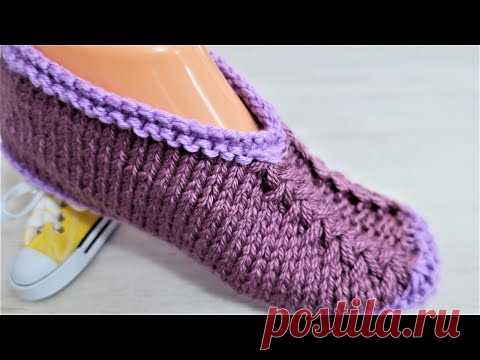 ПРОСТЕЙШИЕ ТАПОЧКИ СПИЦАМИ. Вязать ЛЕГКО И ПРОСТО! Мастер класс для начинающих.