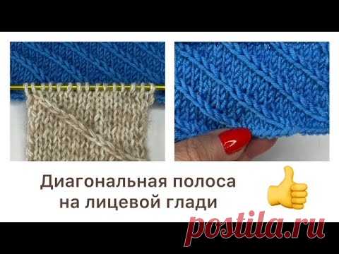 Диагональная полоска на лицевой глади спицами. Это очень просто!