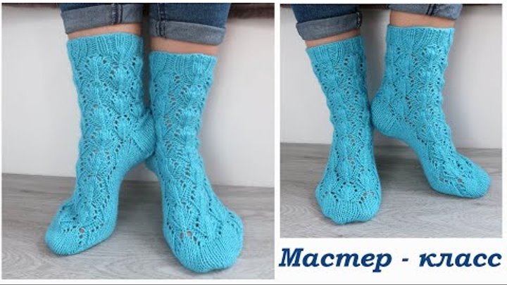 Ажурные носки спицами мелкие листья Пятка подкова Подробный мастер класс