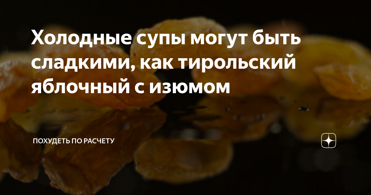 Холодные супы могут быть сладкими, как тирольский яблочный с изюмом Рецепт холодного супа с яблоками заворожил меня до такой степени, что я снова напереводила с немецкого сайта "бабушка готовит".