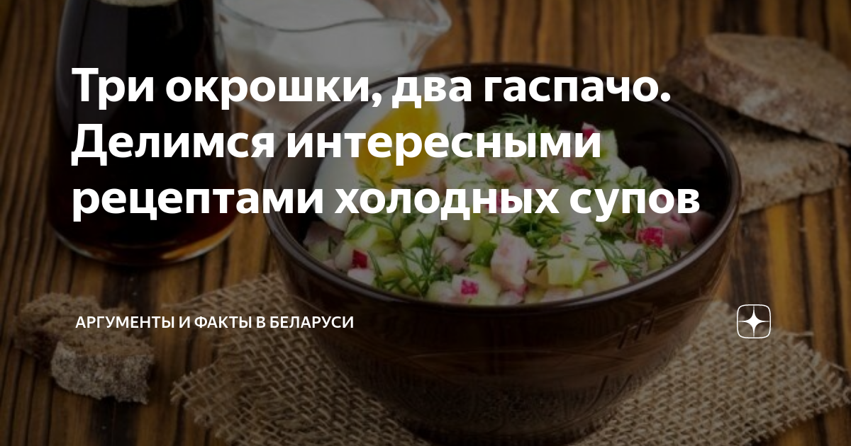 Три окрошки, два гаспачо. Делимся интересными рецептами холодных супов Первая еда в жару — холодный освежающий суп. В нем много овощей, немного мяса или колбасы. Такой суп хорошо насыщает в летнюю жару, дает энергию, когда не хочется ничего горячего, но есть то надо!