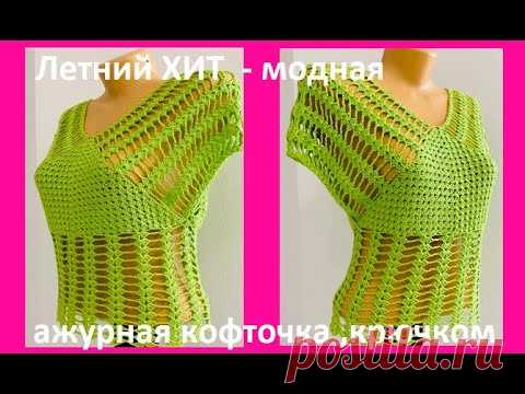 Летний ХИТ, ажурная , МОДНАЯ кофточка , вязание КРЮчКОМ , crochet women blouse ( В № №380)