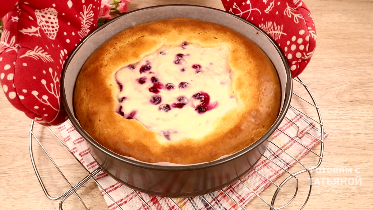 Пирог 'вулкан'! Много творожной начинки, вкусное тесто на сметане и ягоды! | Готовим с Татьяной | Дзен