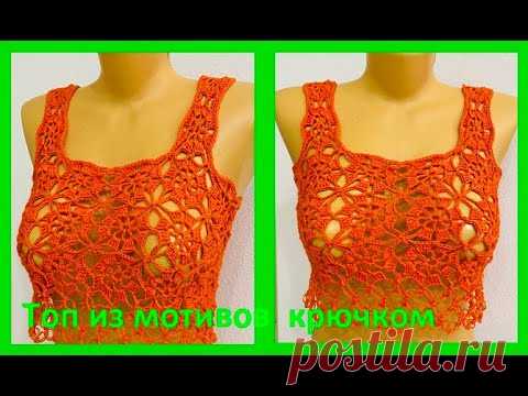 ТОП простыми МОТИВАМИ , вязание КРЮчКОМ безотрывно , crochet top ( В № №377 )