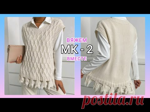 Безрукавка спицами МК - 2/ Жилет спицами/ Вяжем вместе безрукавку/ Посидим повяжем