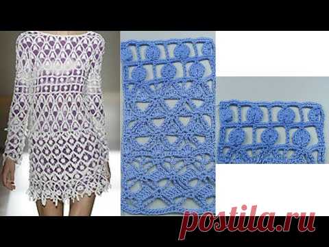 ВЕЛИКОЛЕПНОЕ ПЛАТЬЕ вязаное крючком из трех узоров Часть3