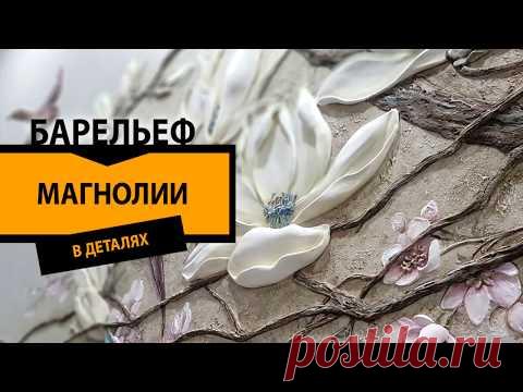 Барельеф ветка магнолии с цветами и птицами, Наталья Хна