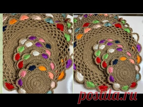 Подставка под чашку из джута и остатков пряжи. Вяжем крючком.🌸