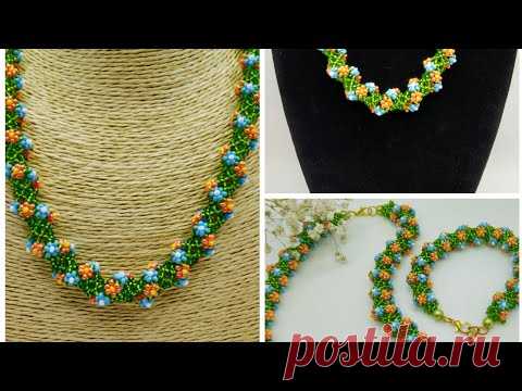 Жгут с цветочками. Колье и браслет из бисера. #Мастеркласс #браслет #Колье #бисероплетение