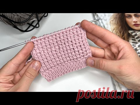 Всего 2 ряда! Плотный узор отлично подойдет для шапок, джемперов, кардиганов. Узор для пледа спицами
