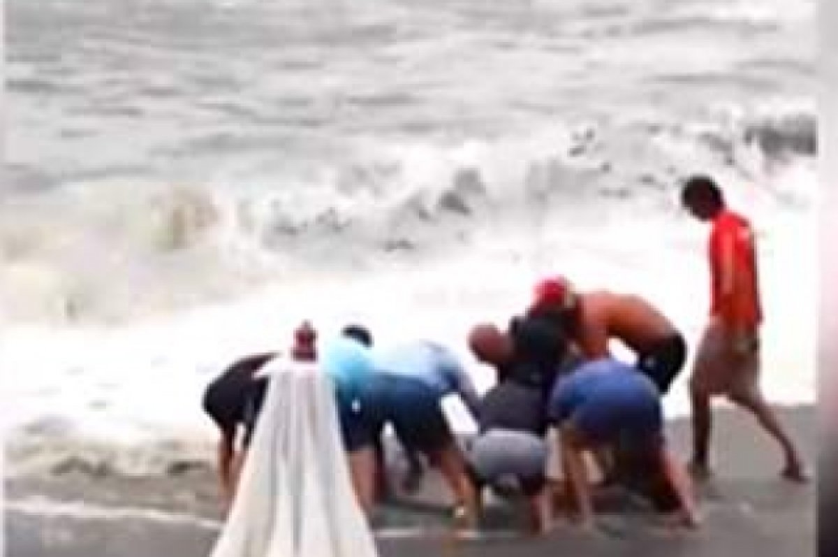 В Адлере спасли выброшенных штормом на берег дельфинов. Двух афалин спасали на пляже «Чайка».